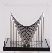 z=axyのオブジェPEGASUS I(馬の鞍 I)は、折り重なる直線でもって谷と頂が共存する不思議な点──これを鞍点(あんてん)といいます──を持つ曲面を表現したユニークな作品です。